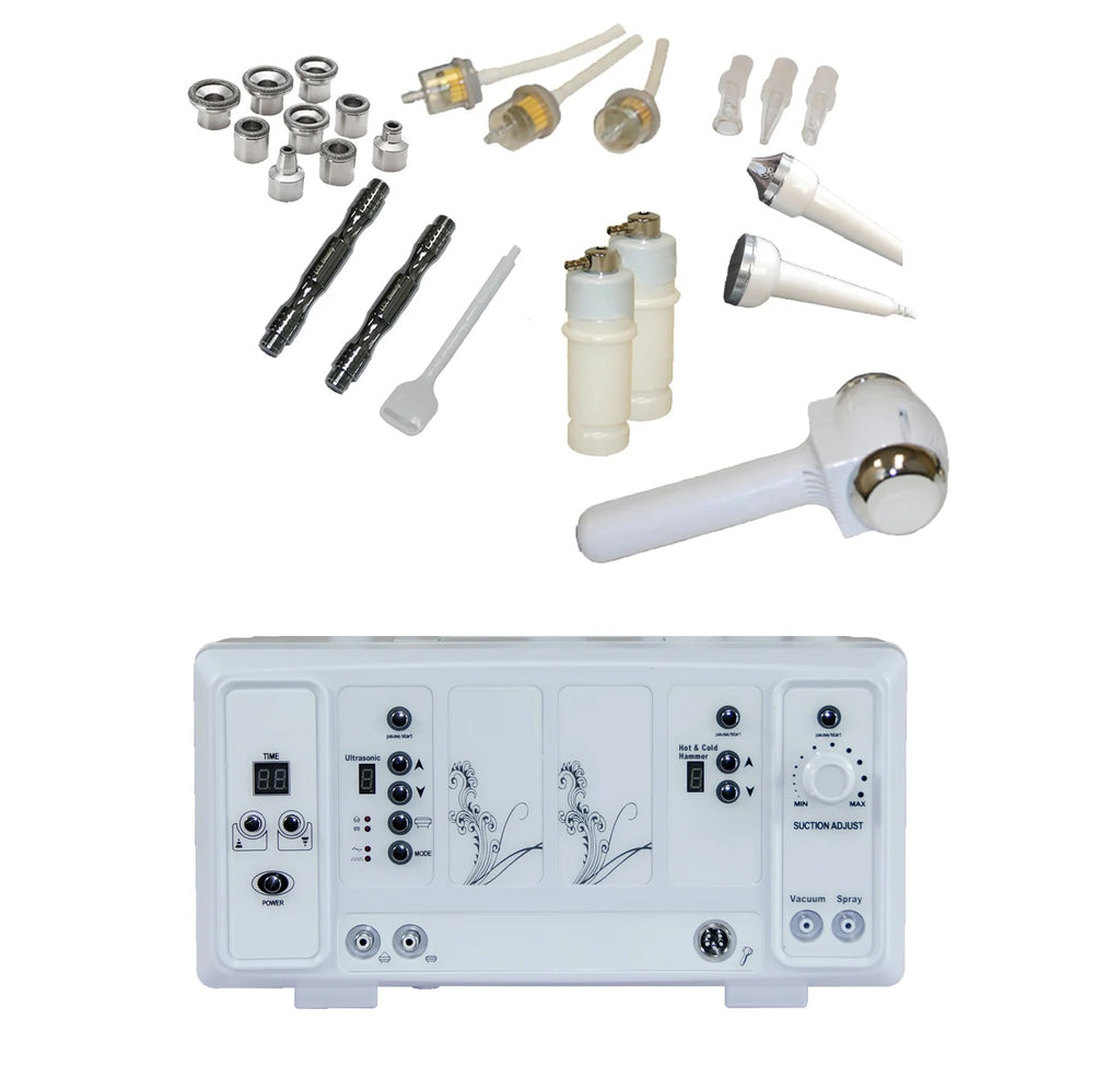 This Professional Strength, portable 5-in-1 Diamond Microdermabrasion Multifunction Facial Machine has all the tools and functions you need to perform a deluxe facial for you or your clients.