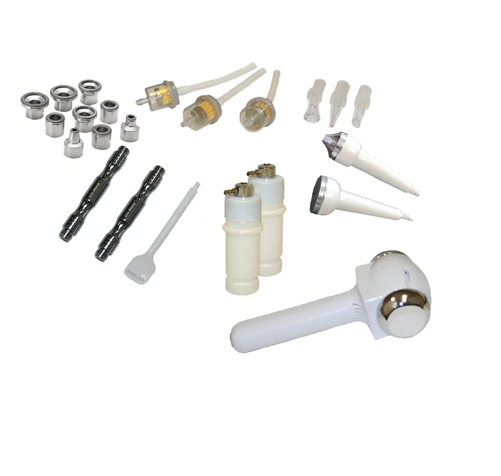 NEW: Our Microdermabrasion comes with two different interchangeable toolsets (traditional, and a new patented solid-core double-tipped wand with skin tightening vacuum wand), so you can use whichever protocol you wish for your client’s treatments.